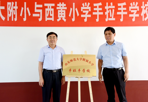 6月16日,山东师大附小与西黄小学手拉手学校结对仪式在堂邑镇西黄小学举行。聊城市东昌府区委挂职副书记薛念山、东昌府区副区长王怀福、堂邑镇党委书记朱凤瑞、东昌府区教育局副局长刘建吾、山东师范大学附属小学党总支书记刘其彬、山东师范大学附属小学副校长肖宝民以及我办第一书记等参加结对仪式。仪式上,刘其彬与王怀福共同为“山东师范大学附属小学手拉手学校”揭牌。本次帮扶活动,山东师范大学附属小学捐赠给堂邑镇西黄小学价值8万余元的计算机、图书和足球等教学用品,并进行了形体、音乐、足球、美术优质课展示。